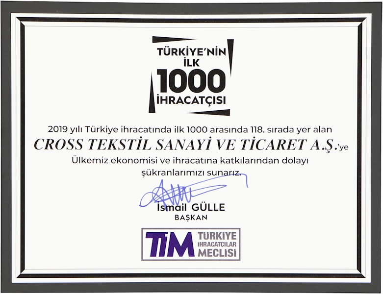 Cross Textiles Sanayi ve Ticaret A.Ş. olarak "2019 yılı Türkiye'nin İlk 1000 İhracatçısı" arasında 118. sırada yerimizi aldık. Çross Textiles'ın her bir çalışanı ile bu başarıyı birlikte omuzlamaktan gurur duyuyoruz.…
